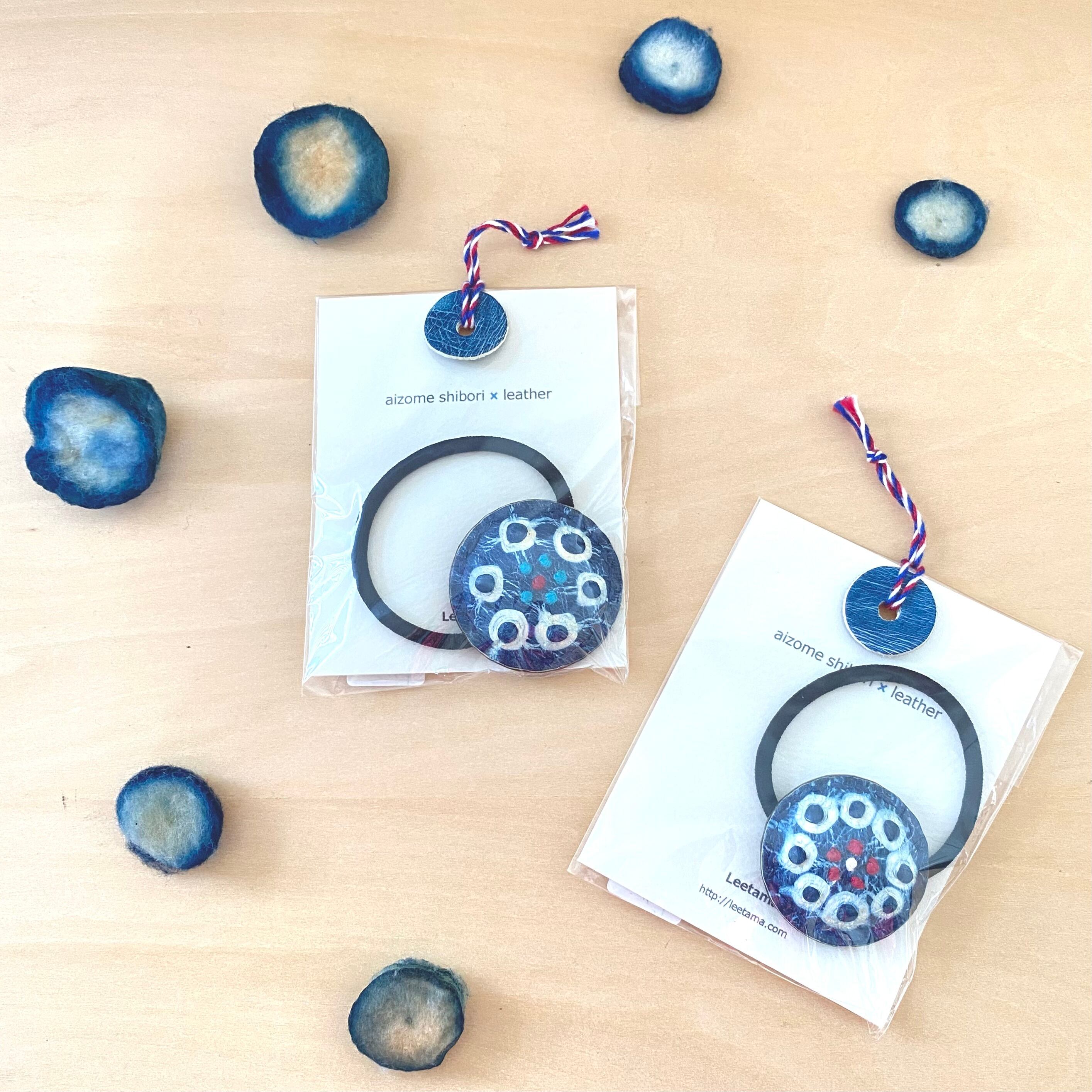 革の藍染絞り hear accessary MAME