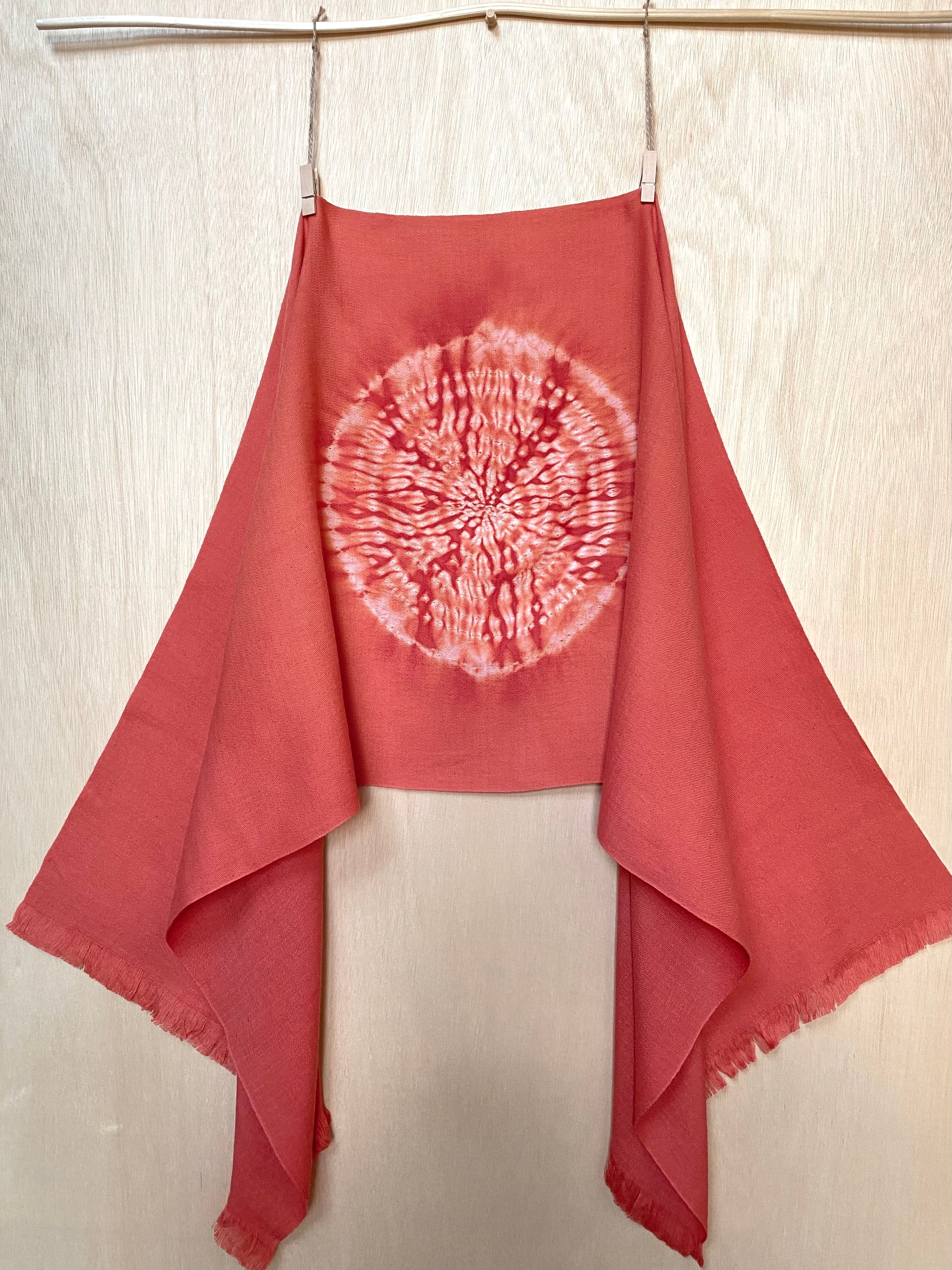 日本製のオーガニックコットンの生地を、”唐松絞り‘’ にて染め上げたストールです。